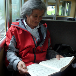 意外に年配者も多く、老若男女、外国人も含めて、すべての人々が楽しめるように非常にうまくできています。ただし高度3000メートルを超えるとやはり頭はもうろうとしてきます。ゆっくり動かなければなりません。 私が泊まったのはスイスの伝統的な様式の木造の家でした。周囲には至るところに高山植物が咲き乱れ、花々の数の多さに圧倒されます。野原に草花が無数に咲き、ちょうど今の季節は放牧が始まるころで、まさにマーラーの交響曲で使われるあのカウベルが聞こえてきます。この高度のあたりでは今がちょうど春の盛り。クロッカス、チューリップと同時にシャクナゲ、そして色とりどりの高山植物が一斉に咲いています。 1日のうちに高度の低いところから高いところまで行けるので、本当にさまざまな気候の変化を味わうことができました。スイスの観光に世界中の人が集まるのは、こういうわけであると私にもよくわかりました。 |
