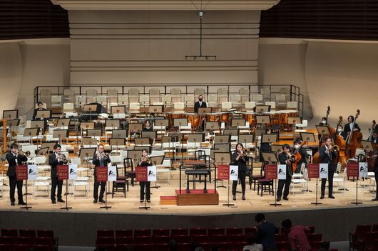 | ■開演前と休憩時のファンファーレ〜東京シティ・フィルの金管奏者の皆さん |